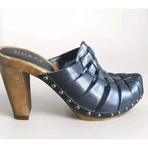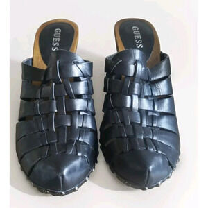 Guess Clogs Womens Size 8.5 Black Woven Leather Block Heel Stud Gwwoven