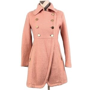 Guess Pink Double Breasted Bouclé Cutaway Coat - Size PXS