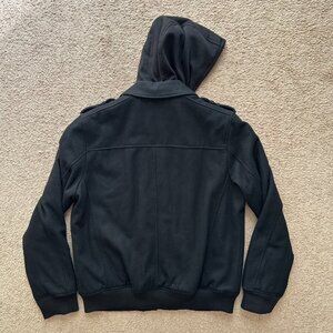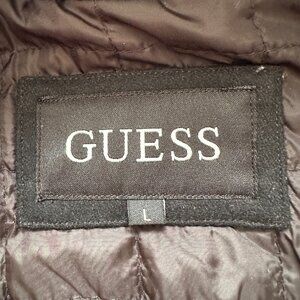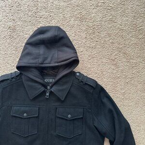 Guess Coat Mens Large Wool Blend Black Hood Full Zip Pockets Insulated Jacket