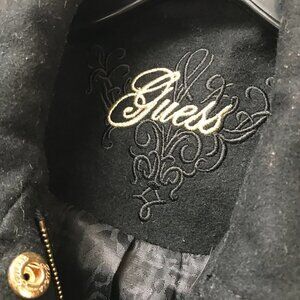 Guess Coat Peacoat Black Size Small Jacket EUC Warm Winter Frog Knot Clasps