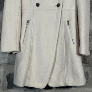 Guess Coat Woman's XS Cream Wool Blend Double Breasted Pea Coat Winter Military