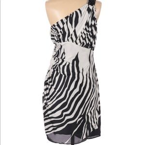 Guess Cocktail Dress one shoulder Sz 4 black white