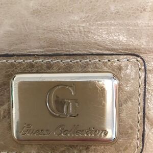 Guess Collection Beige Leather Studded Shoulder Bag With Gold Hardware