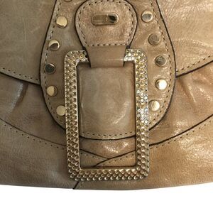 Guess Collection Beige Leather Studded Shoulder Bag With Gold Hardware