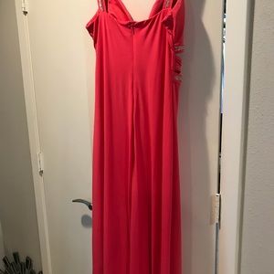 Coral Guess formal gown Size 8, fits between 6-8. Stretchy soft fabric with zipper in the back. Worn once to a wedding. Bottom has some small stains which I pictured above, but nothing very noticeable.