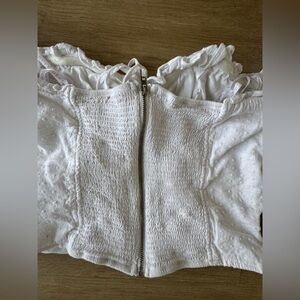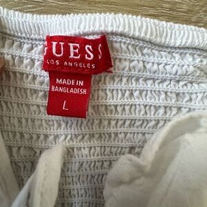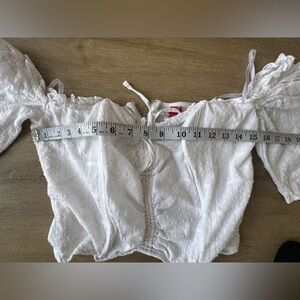 Guess Cotton Top Eyelet Peasant Blouse Crop Puff Sleeve SZ L