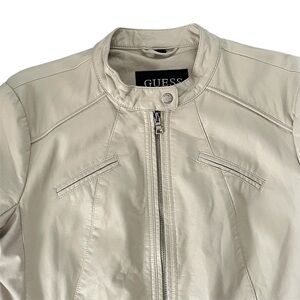 Guess Cream Faux Leather Jacket Moto Feminine Size XL Lightweight Neutral Y2K