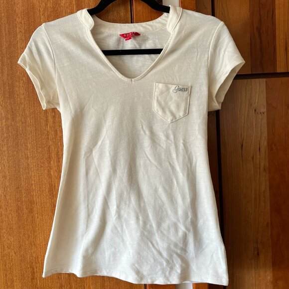 Guess soft cream-colored t-shirt with breast pocket in great condition