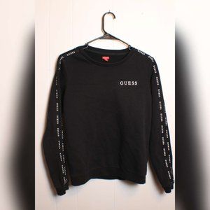 Guess Crewneck Sweatshirt. Black with white printing. Sleeve details
