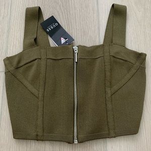 Guess Cropped Zipper Bandage Top - Olive Green