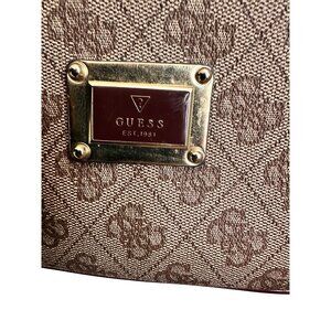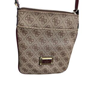 Guess Crossbody Bag With Monogram Logo Print Zip Closure & Adjustable Strap Tan