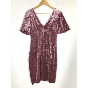 Guess Crushed Velvet Dress Puff Sleeve V-Neck Cocktail Bodycon Mini Mauve Pink 2