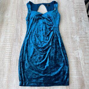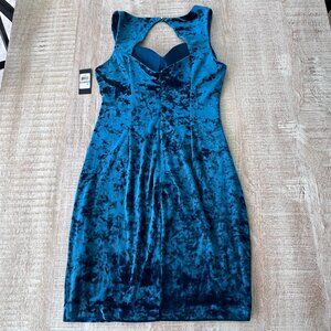 Guess Crushed Velvet Teal Sleeveless Midi Dress Size 12 NWT