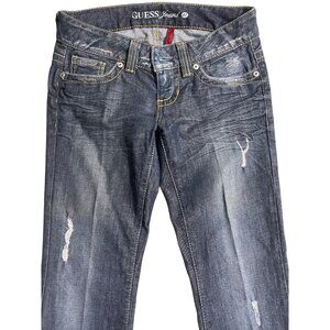 Guess Daredevil Bootcut Jeans Size 27 Dark Wash Distressed