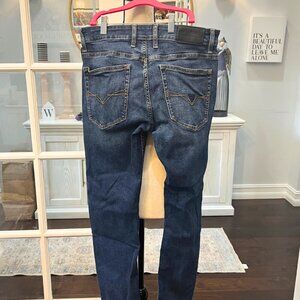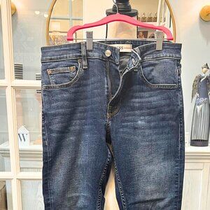 Normal washed and worn condition - my son wore them for work so we did remove the guess triangle that is usually on the pocket as seen in the photo.