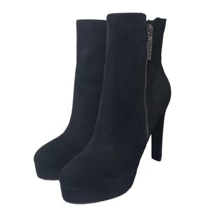 Guess Dejah Black Faux Suede Zip Platform Ankle Booties Sz 8.5M