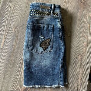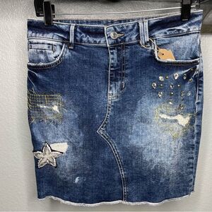 Guess Denim Blue Embellished Distressed Jean Mini Skirt Size 29