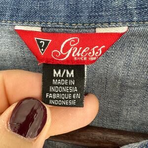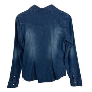 Guess Denim Button Up Blouse Womens Medium Pearl Snaps Chambray Boho Western