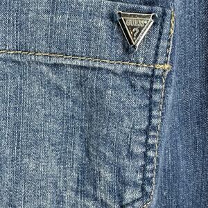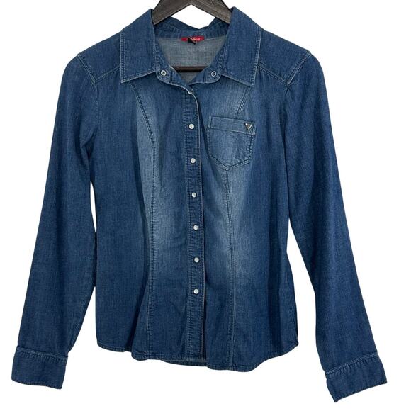 Guess Denim Button Up Blouse Womens Medium Pearl Snaps Chambray Boho Western