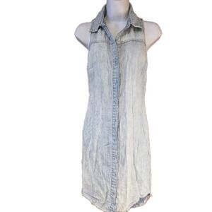 Guess Denim Button Up Shirt Dress With Cut Out Back Fringed Bottom Sz S