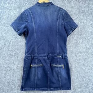 Guess Denim Dress Womens XL Blue 90s Retro Front Zip Mini Y2K Hip Hop Streetwear