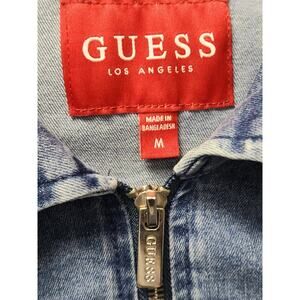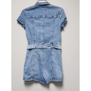 Guess Denim Jean Short Zip Up Romper Women's Medium with Snap Belt NWOT