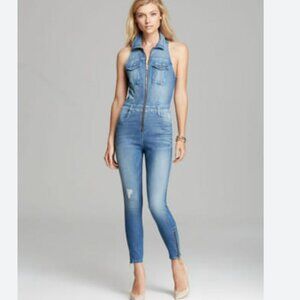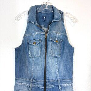 Guess 1981 Denim Jean Jumpsuit Blue Front Zip Sleeveless Sexy Stretch Cotton Blend Y2K