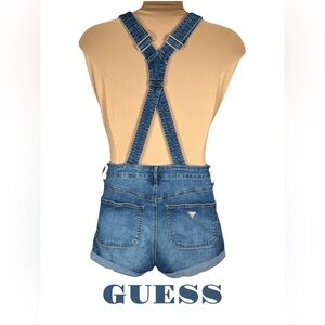 • Denim shortalls, also known as short overalls or a romper, featuring a bib front with a pocket, adjustable shoulder straps, side button closures and rolled cuffs on the shorts.