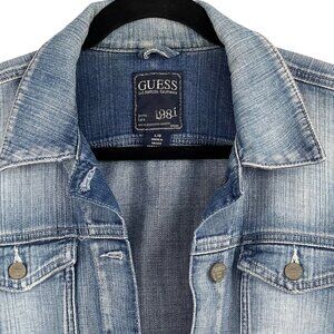 Guess Denim Trucker Jacket Faded Blue Light Wash Size L Women's Large