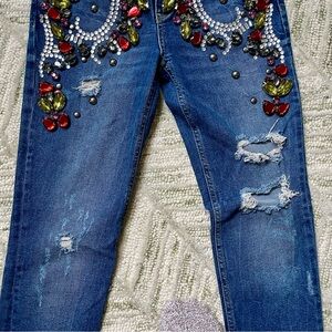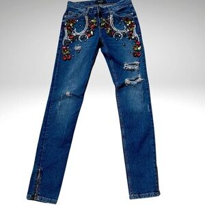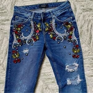 Guess Diamanté Jeweled Bedazzled Pearls Stones Beaded Skinny Leg Denim Jeans