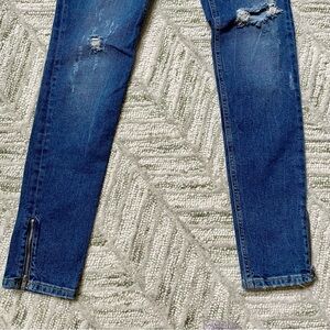 These jeans are incredible! Filled with embellishments! Zip and button fly. Distressing. Skinny leg with side zippers.