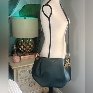 An easygoing silhouette goes sleek and chic with a faux leather exterior and chain-detailed handles on the Guess Multi Digital Hobo.