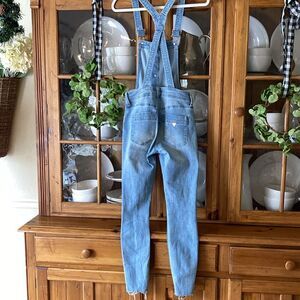Guess Distressed Light Wash Rose Button Front Skinny Overalls Women’s 25 EUC