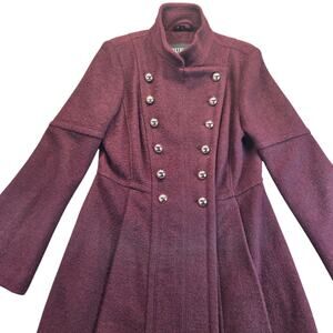 Guess Double Breasted Full Length Wool Blend Peacoat Purple Medium New With Tags