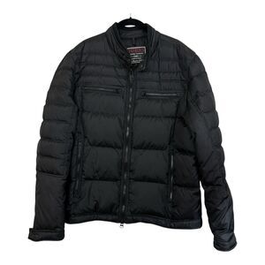 Guess Down Puffer Jacket Men Sz XL Black Nylon Full Zip Waterproof Moto Zip Cuff