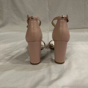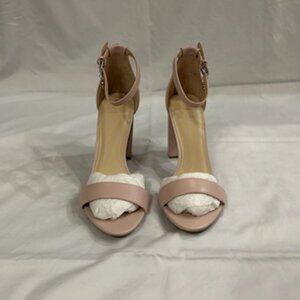 Beautiful Guess dress sandal, Lt Pink, Sz 7.5. New, never worn, tag on box. Block heel, height 3in, ankle strap w/silver buckle and charm detail. Silver Guess logo button on back. Smooth leather upper. Perfect for spring or vacation!