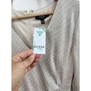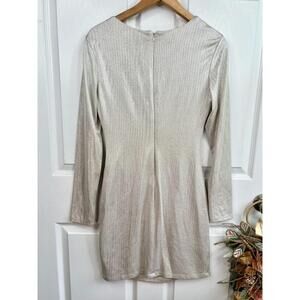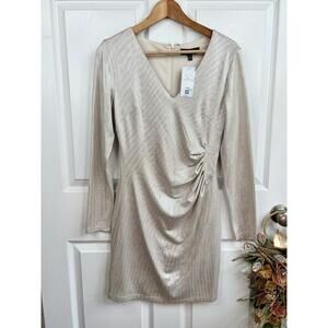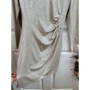 Guess Dress Size 6 Silver Beige Ruched Metallic Long Sleeve VNeck Party
