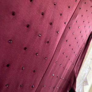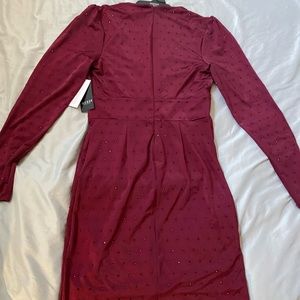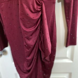 Double lined, covered in small burgundy gems and thick electric material that helps hold everything in while smoothing out your curves. Slightly puffy shoulders and body hugging everywhere else. GUESS DRESS SIZE 8