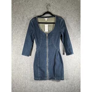 Guess Dress Women XS Blue Zip-Front Body-Con Denim Y2K PREPPY Long Sleeve NWT