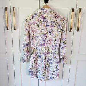 Guess Dress Womens XS Lavender Purple Floral Long Sleeve Full Zipper Mini