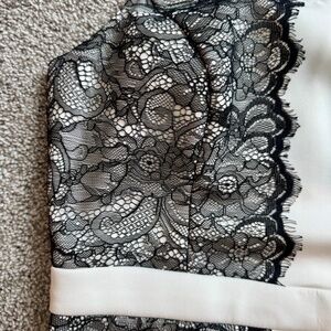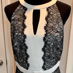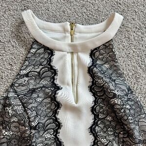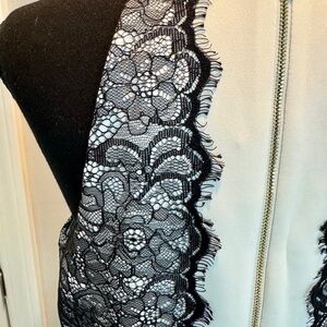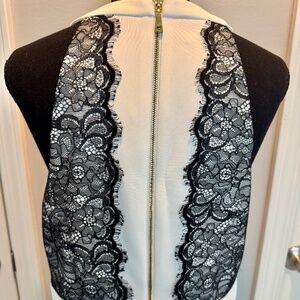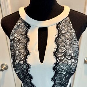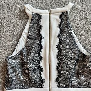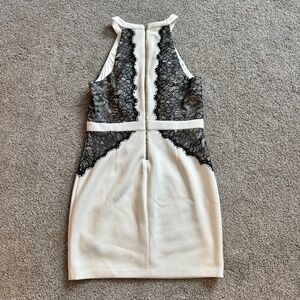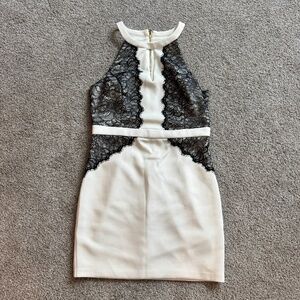 Guess Dress, white with black lace overlay, L, EUC, back zip closure, Halter