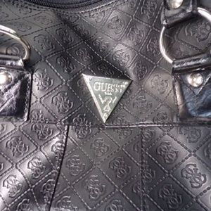 Guess Duffle Travel Bag Satchel Faux Leather Zip Closure 2 Outside Side Pockets 3 Inside Pockets Removable Crossbody Strap 18" x 10"