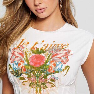 Guess Eco | Je T'aime Corset Tee Floral Graphic in Pure White | Size Medium
