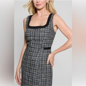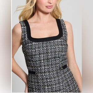 Guess Eco Yvonne black white Tweed boucle square neck Dress size large new