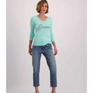 Guess Embellished V Neck Sweater Mint Green Sz L EXCELLENT CONDITION! LLL