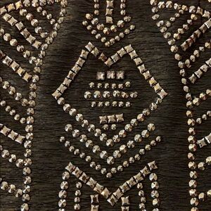 Perfect for a night out - this little black embellished skirt is sure to grab some attention!! Guess Black textured fabric with fully embellished stud details on the front. Clean back with logo ID and side zipper.