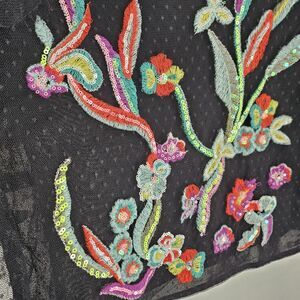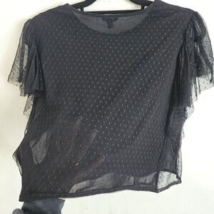 Guess Rylie Floral Embroidered Sequin Sheer Double Lined Crop Top Ruffle Sleeves. Some spots of pulled threading see photos. Thank you for looking.