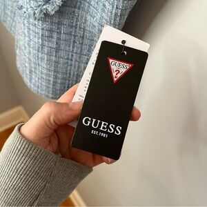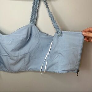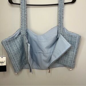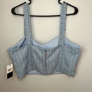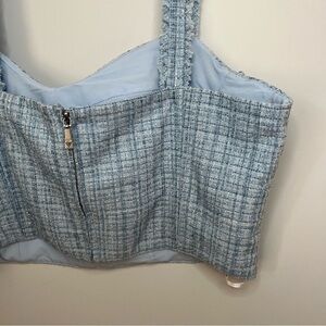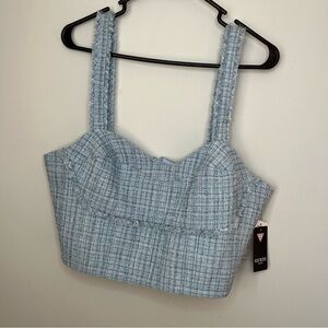 Guess Emily Sky Blue Tweed Plaid Cropped Bustier Top Size XLarge NWT