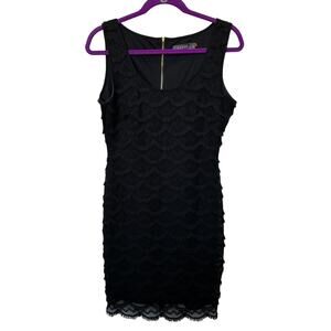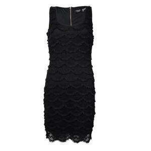 Guess Eyelash Fringe Sleeveless Bodycon Mini Sheath Dress Black Women's Size 6