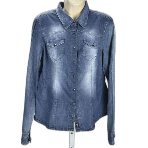 Guess Faded Chambray Snap Down Shirt Size Lg